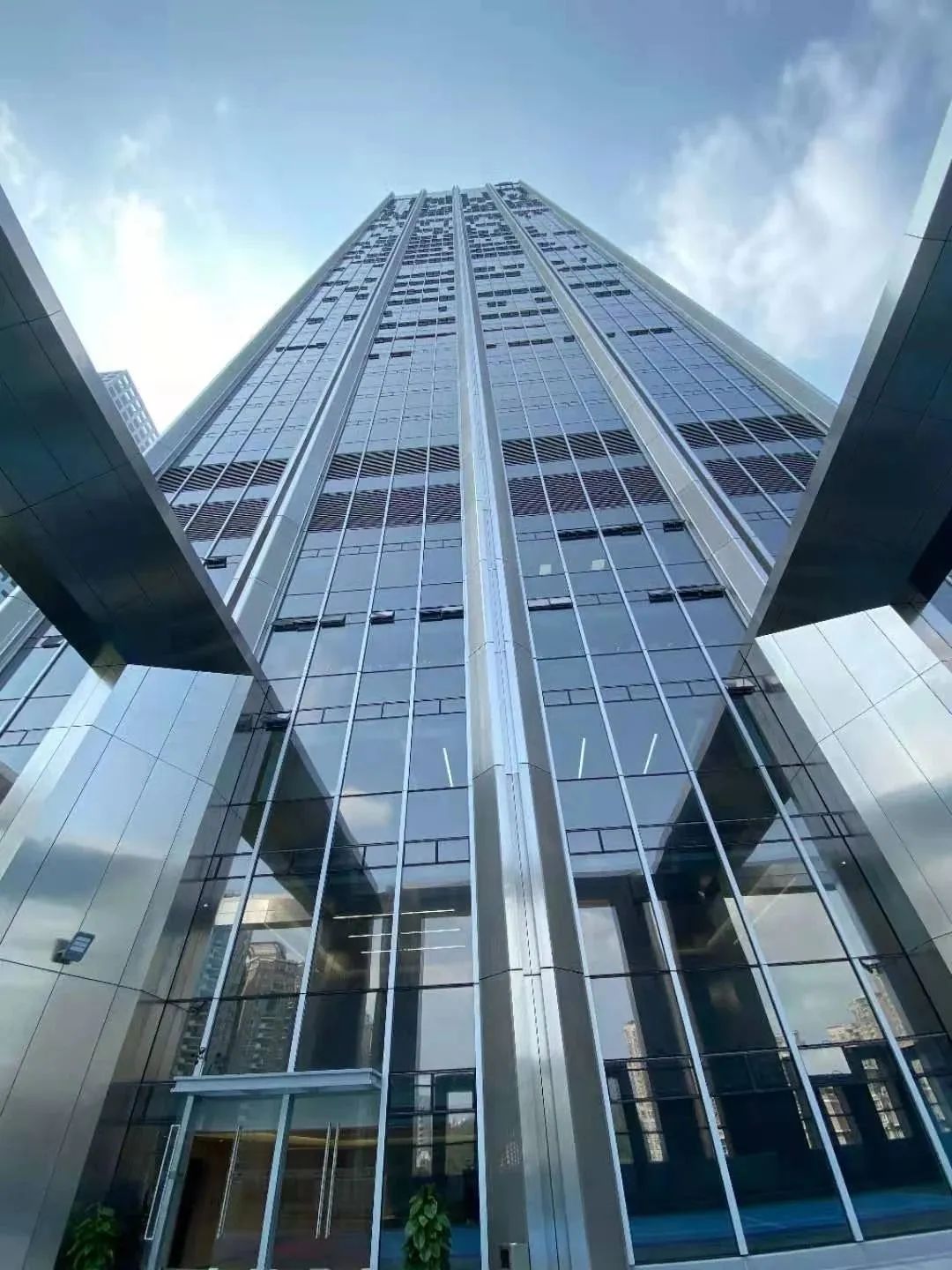 深圳建行大廈幕墻工程是一棟幕墻頂標(biāo)高224.8米的超高層辦公塔樓(共46層),幕墻總工程量約7.2萬平方米。其中1~4層為裙樓區(qū)域,5層以上為塔樓區(qū)域。塔樓采用單元式幕墻形式,裙樓采用構(gòu)件式幕墻形式,及裙樓大堂采用拉索式幕墻。工程涵蓋單元式玻璃幕墻,構(gòu)件式玻璃幕墻、單向拉索點(diǎn)式玻璃幕墻、開放式不銹鋼板幕墻、鋁合金通風(fēng)百葉、構(gòu)件式玻璃及不銹鋼板吊頂、穿孔不銹鋼裝飾架、玻璃雨棚、不銹鋼裝飾構(gòu)架鋼桁架、內(nèi)開窗、玻璃天窗、無框玻璃門、自動(dòng)平開門等多種幕墻形式。項(xiàng)目施工期間,美芝股份秉承“筑造精品工程、裝飾美化生活”為企業(yè)使命,組建專業(yè)齊全的技術(shù)質(zhì)量管理隊(duì)伍,根據(jù)項(xiàng)目的實(shí)際特點(diǎn),分作三個(gè)施工區(qū),且各施工區(qū)分段組織施工,科學(xué)合理的安排施工工序,同步流水交叉作業(yè)。除此之外,加強(qiáng)對(duì)項(xiàng)目的難點(diǎn)和重點(diǎn)的技術(shù)攻關(guān),通過制作安裝樣板,完善施工方案,有效提高大面施工效率和質(zhì)量,最終高品質(zhì)完成了幕墻工程。