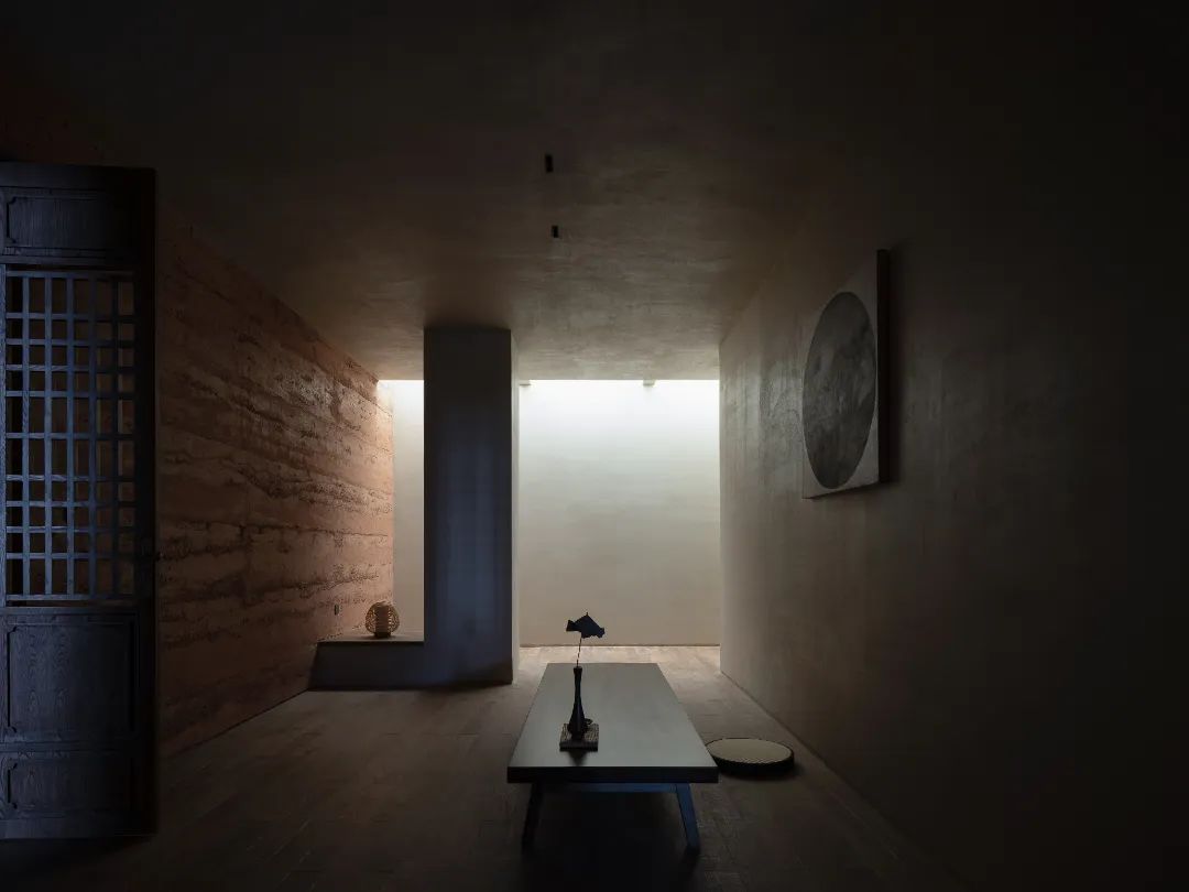 禪修室以獨立的體塊和材質插入整體空間,中間的夯土墻歷久而彌堅,打破原有的平整性,意在獲得其與區域、整體乃至人文歷史的對話關系。