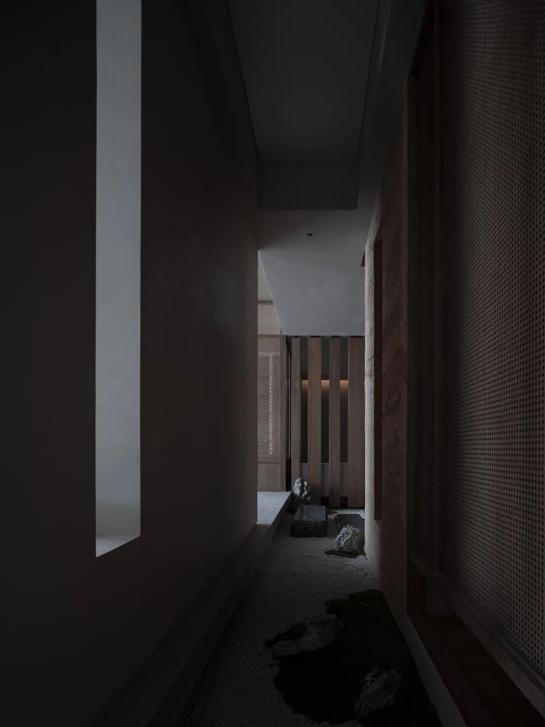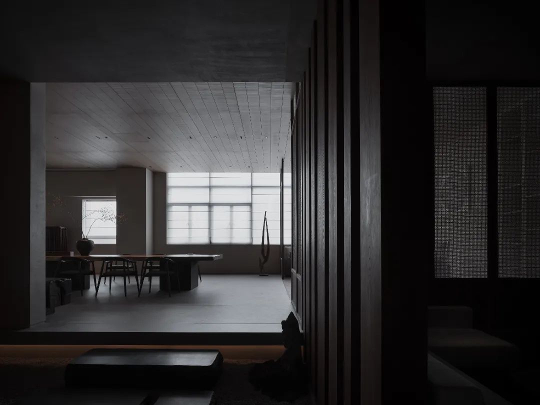 空間有時更像一座橋梁,建立起環境與人文的密切聯系。半入的微光將空間純粹化,此時的浮躁與喧囂好似無處遁形,與深邃而神秘的陰影相輔相成,構成凝練的幾何形式感。