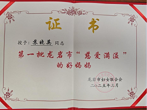 在龍巖國資國企隊伍中,有這樣一位熠熠生輝的女性:她以溫柔堅韌的品格撐起家庭半邊天,用專業熱忱的擔當守護萬家房產交易安全,以真誠奉獻的精神展現了新時代國資女職工的擔當。她就是龍巖市住房置業融資擔保有限公司客服部主管蘇曉英,作為首批獲得龍巖市“慈愛滿溢”好媽媽榮譽稱號的女性之一,也是龍巖市國資系統中唯一獲得此項殊榮的優秀女職工代表。