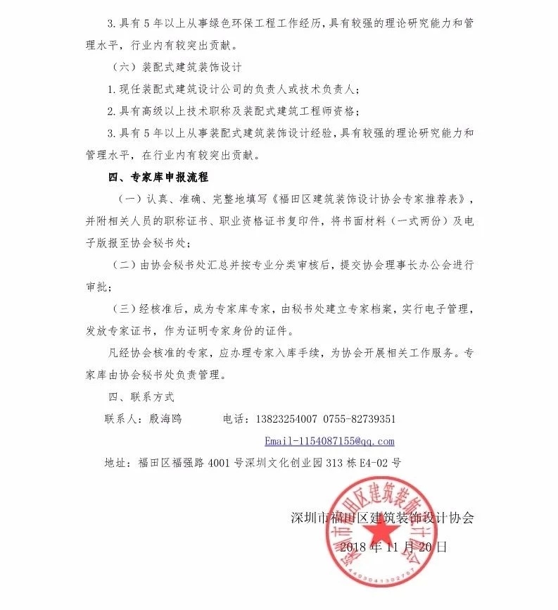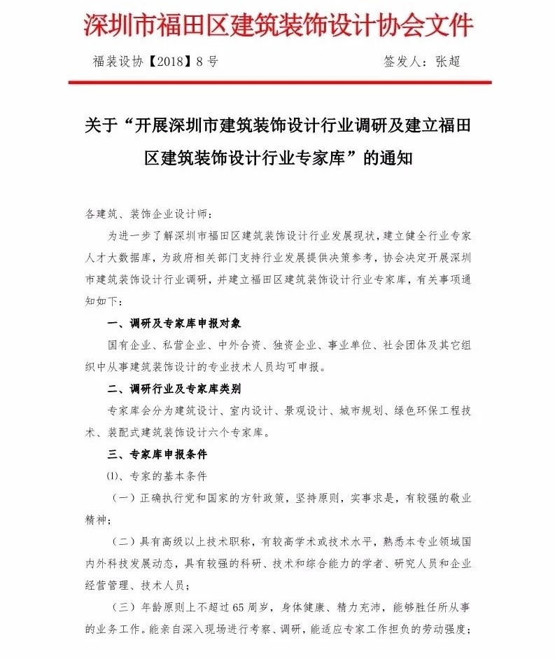 關于“開展深圳市建筑裝飾設計行業調研及建立福田區建筑裝飾設計行業專家庫”的通知