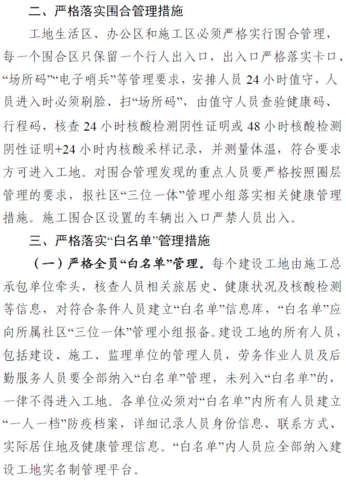 1.建設工地的所有人員,包括建設、施工、監理單位的管理人員,勞務作業人員及后勤服務人員要全部納入“白名單管理,未列入“白名單”的,一律不得進入工地。