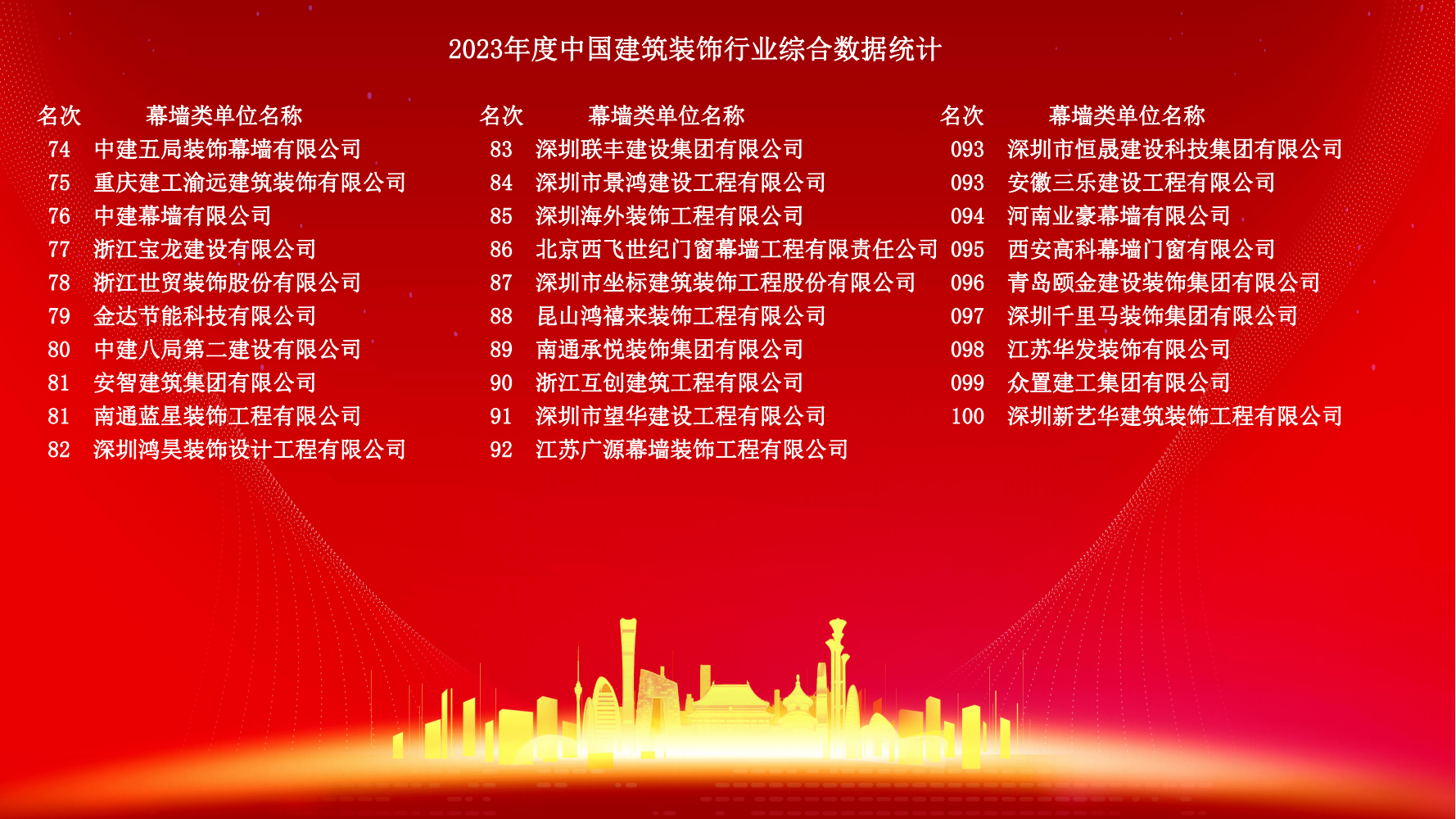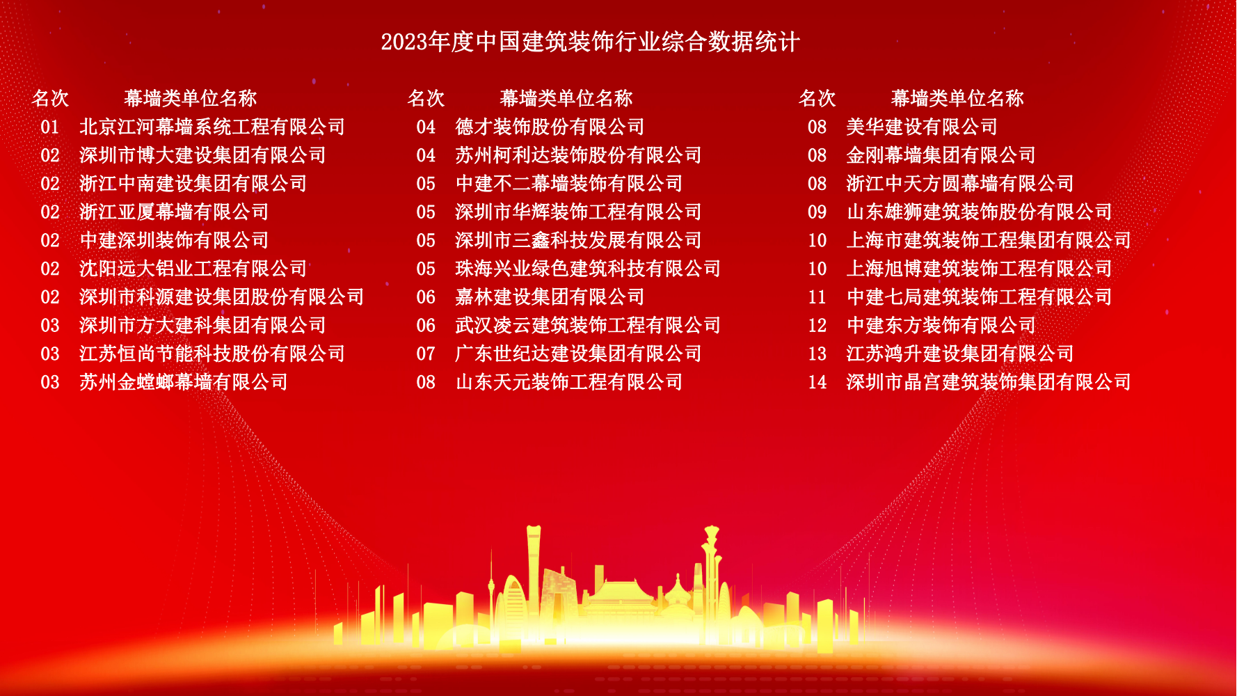 12月10日,2023年度中國建筑裝飾協會行業綜合數據統計正式發布。詳細名單如下: